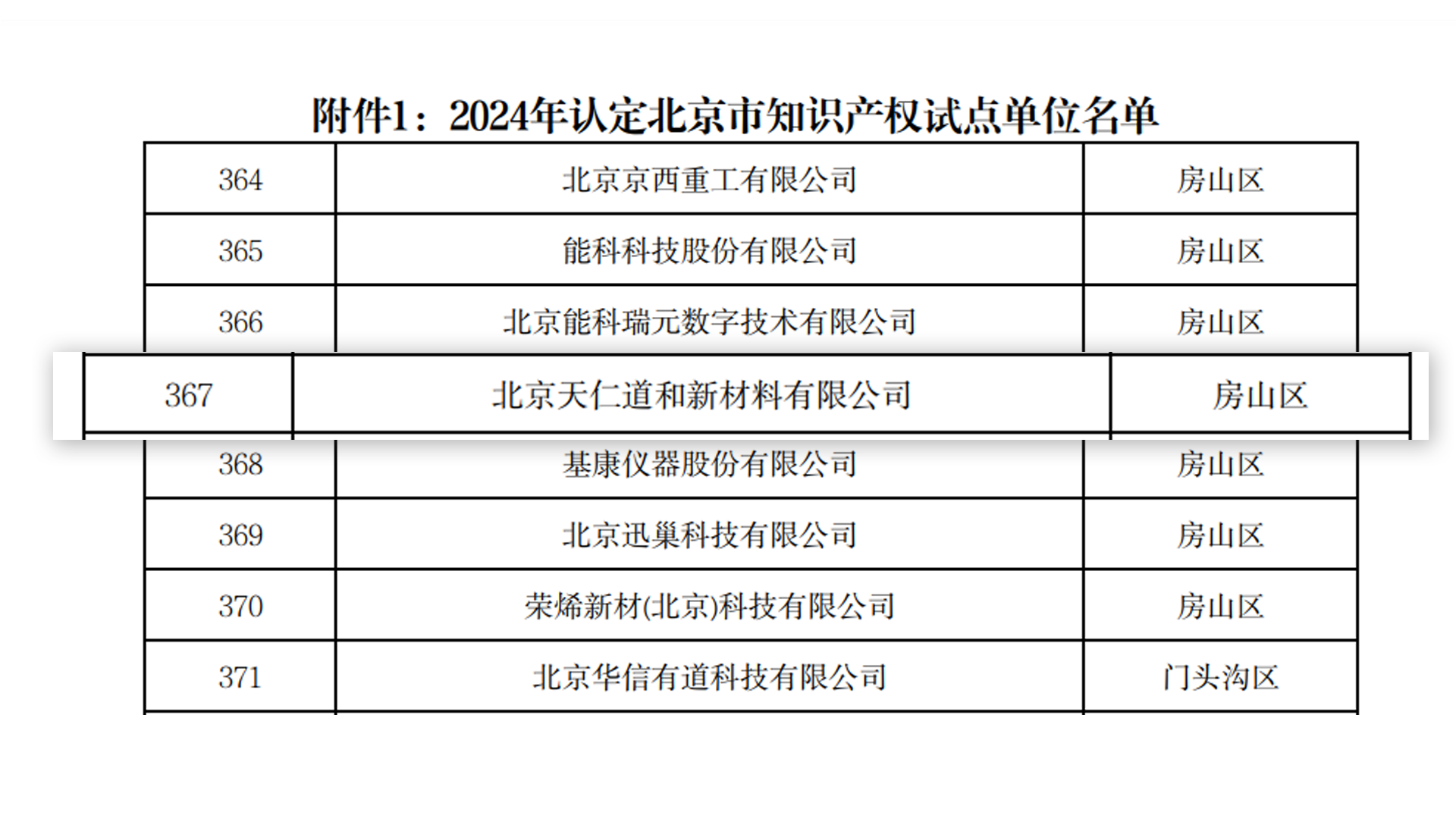 天宜上佳子公司天仁道和首次參評即獲“北京市知識產(chǎn)權(quán)試點(diǎn)單位”認(rèn)定。天仁道和作為國家及中關(guān)村高新技術(shù)企業(yè),北京市專精特新小巨人企業(yè),致力于成為提供先進(jìn)復(fù)合材料解決方案的強(qiáng)軍強(qiáng)國龍頭企業(yè)。天仁道和始終將創(chuàng)新視為企業(yè)發(fā)展的核心動力,高度重視知識產(chǎn)權(quán)工作,不斷完善相關(guān)管理制度,加大研發(fā)投入,積極培育自主知識產(chǎn)權(quán)。